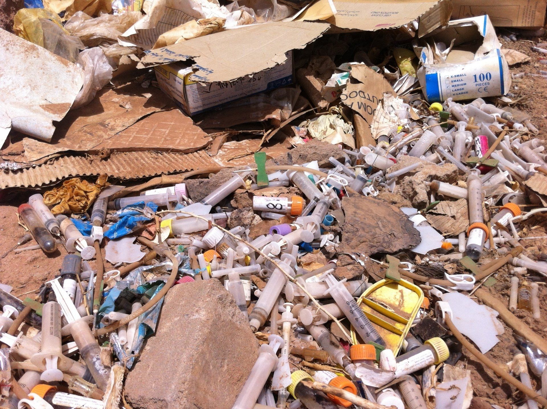 Medical waste is dumped next to the hospital.