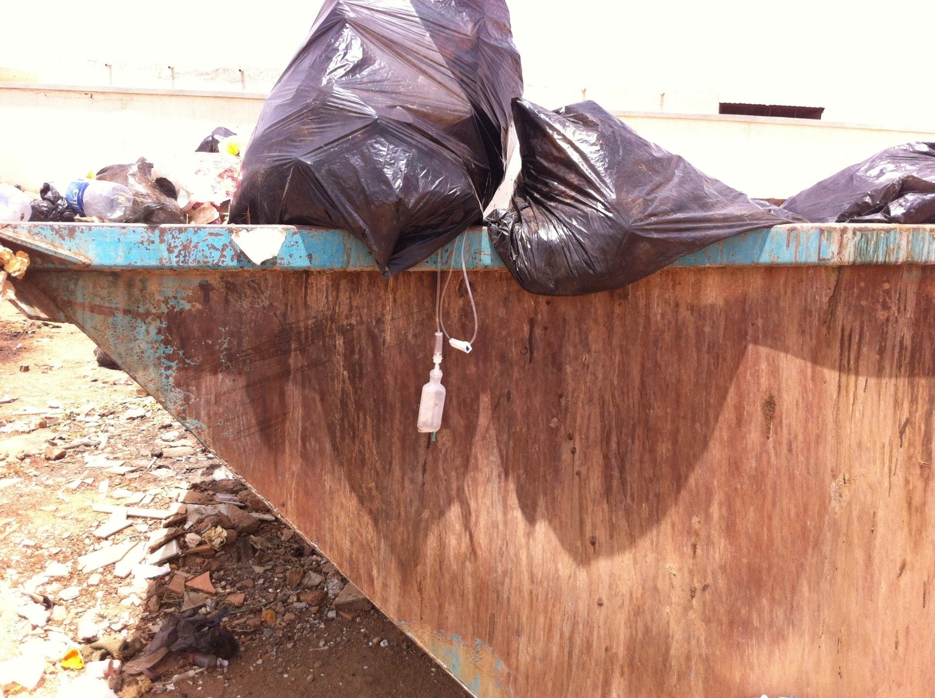 Medical waste includes, medication, body parts, blood and anything else you can think of produced by any hospital. It is dumped next to the hospital and picked up by regular carbage collection. The garbage collectors do this by hand without any protective gear. Unfortunately this project was canceled due to technical problems with the incinerators, the political turnmoil and then COVID. The partners will try to initiate a new attempt once the situation is more favorable.